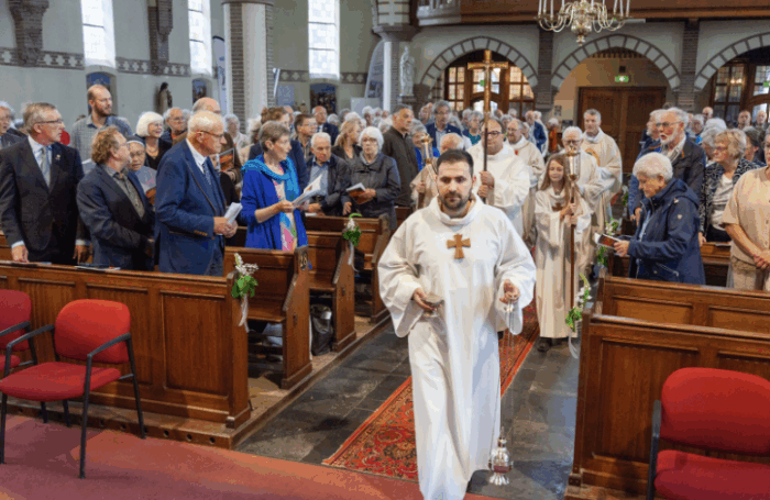 Heel jammer dat veel mensen in de kerk niet of nauwelijks konden verstaan wat gezegd werd. Tijdens de receptie kreeg ik veel klachten hierover. Maar de eucharistieviering werd zeker wel ervaren als een feest, met zelfs drie concelebranten (Huub Adema, Jan van Mil en Jörg Monier) drie acolieten (Fadi, Paul en Alexander) en voor het eerst sinds vijf jaar weer een misdienaar (Olivia), en met zangvereniging Vivace die onder leiding van Frans Coerwinkel en met Wouter Broens aan orgel en piano zorgde voor een schitterende vertolking van de vreugde in het zicht op Pinksteren, het uitzien naar de heilige Geest, waarvoor nogmaals dank. Ook veel dank aan vicevoorzitter Harry voor de warme, eerlijke en hoopgevende woorden aan het einde. Veel dank aan bestuur en pastoraatsgroep. En voor wie de eucharistieviering en het lof wil terugkijken: dit is mogelijk dankzij de prachtige opnames gemaakt door BD1, waarvoor veel dank, en waarin alles goed te verstaan is. De opnames vind je op youtube, zoekwoord kerk Millingen (of: https://youtu.be/mmp5vGRhreU; https://youtu.be/EREOeYg84-g).